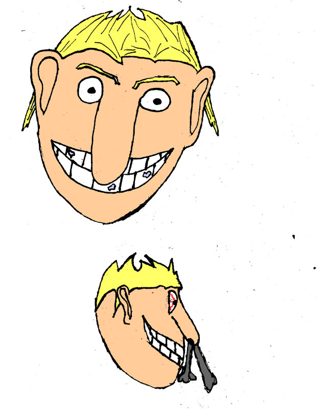 Die runden Augen wirken viel besser mit dem Grinsen zusammen geradezu psychotisch :D Am besten noch Augenringe dazu!