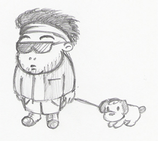 Also Leute wollte euch auch mal eine Figur von mir zeigen. Ist einfach nur eine Skizze. Das wäre der Moritz mit seinem Hund. Habe die Beiden auf meinem Praktikum in einer Werbeagentur erfunden. Dazu gibt es natürlich auch eine Geschichte aber die gibts irgendwann mal später.