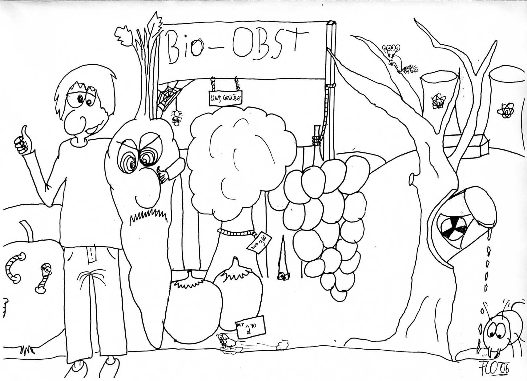 Das Schild "Bio-Obst" würd ich mit einem fett gedruckten Font gestalten