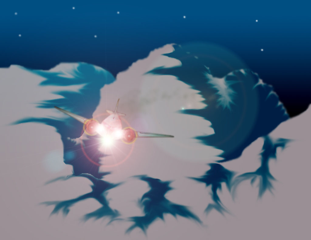 Also ich würde sagen, das wenn man die version von Frogger und Mr. Manga mixen würde, dann würde das Bild noch cooler wirken, und zwar wenn man froggers verschwommenen Hintergrund und Mr. Mangas scharfes Flugzeug nehmen würde, dann könnte nämlich noch ein Tiefeneffekt gelingen, oder? Jedenfalls denke ich das mal. Ach ja und Klees Tip mit den Sternen würde auch noch jut sein