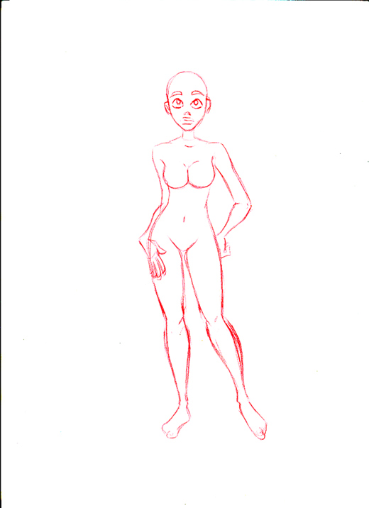 Als nächstes zeichne ich eigentlich auch schon den Körper über die Strichzeichnung. Das ist reine Übungssache, dazu kann ich nicht sooo viel sagen.