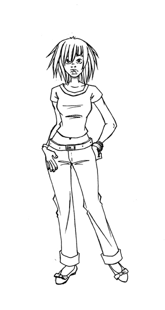 Jetzt nur noch Kleidung und Haare drüber. Das geht wesentlich leichter, wenn man vorher den Körper gezeichnet hat!