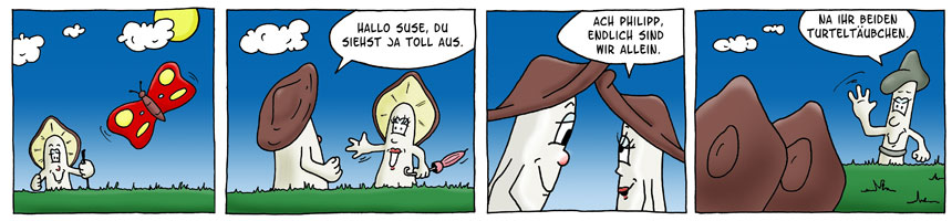 Also mir gefällt der Strip recht gut, der Gesichtsausdruck von Senior Pilz ist echt gut gelungen, sehr knuffige Figur. Ne Serie fänd ich super, wenn du Ideen dazu hast.