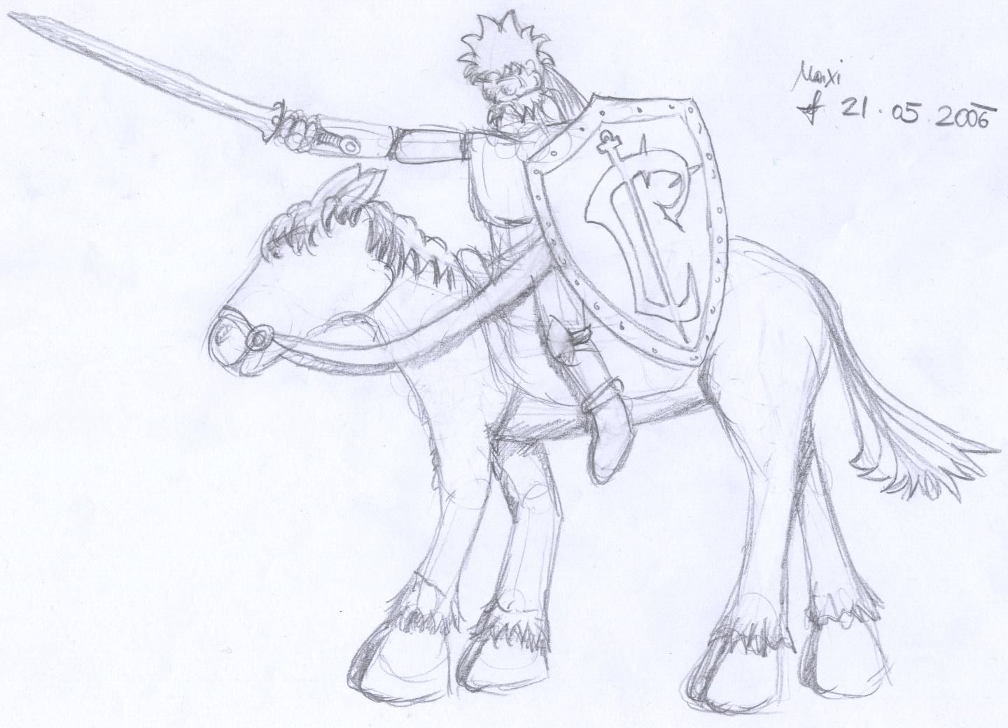 PFERDE sind schwer - und Pferde sind groß! Man sieht die Tierchen ja nun nicht jeden Tag - und ich war überrascht, als wir im Englischen Garten einer berittenen Patrouille begegneten - und der eine Gaul hatte da, wo mein Kopf aufhört (bei etwa 198 cm) seine Risthöhe! Fuck, war das Vieh groß! Musste für eine Freundin bisher mein einzigstes Pferd zeichnen - und habe mich reingehängt wie Elch - Gott sei Dank sind nicht alle Pferde in diesem Mammutformat - sonst bräuchte man ja `ne Gangway zum Aufsteigen!
