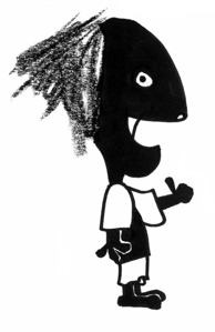 Als ich gestern meine Kreativität durch Herumschmieren mit Wachsnmalkreiden zum Ausdruck bringen wollte, entstand ein schwarzer Fleck. Ein bereitliegender Edding wurde dazu genutzt, ein Männchen drum herum zu zeichnen. Das Ergebnis seht ihr unten.