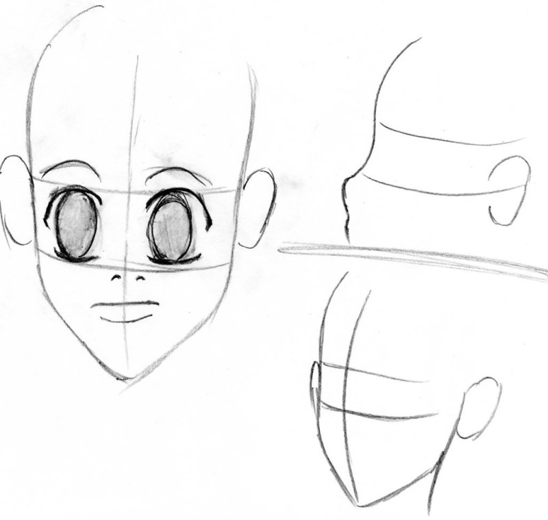 ich würde den kopf nicht sehr viel größer machen. allenfalls ein klein bisschen, oder du lässt den kopf so und verpasst dem typen eine voluminösere frisur, das geht auch und ist ebenfalls manga^^