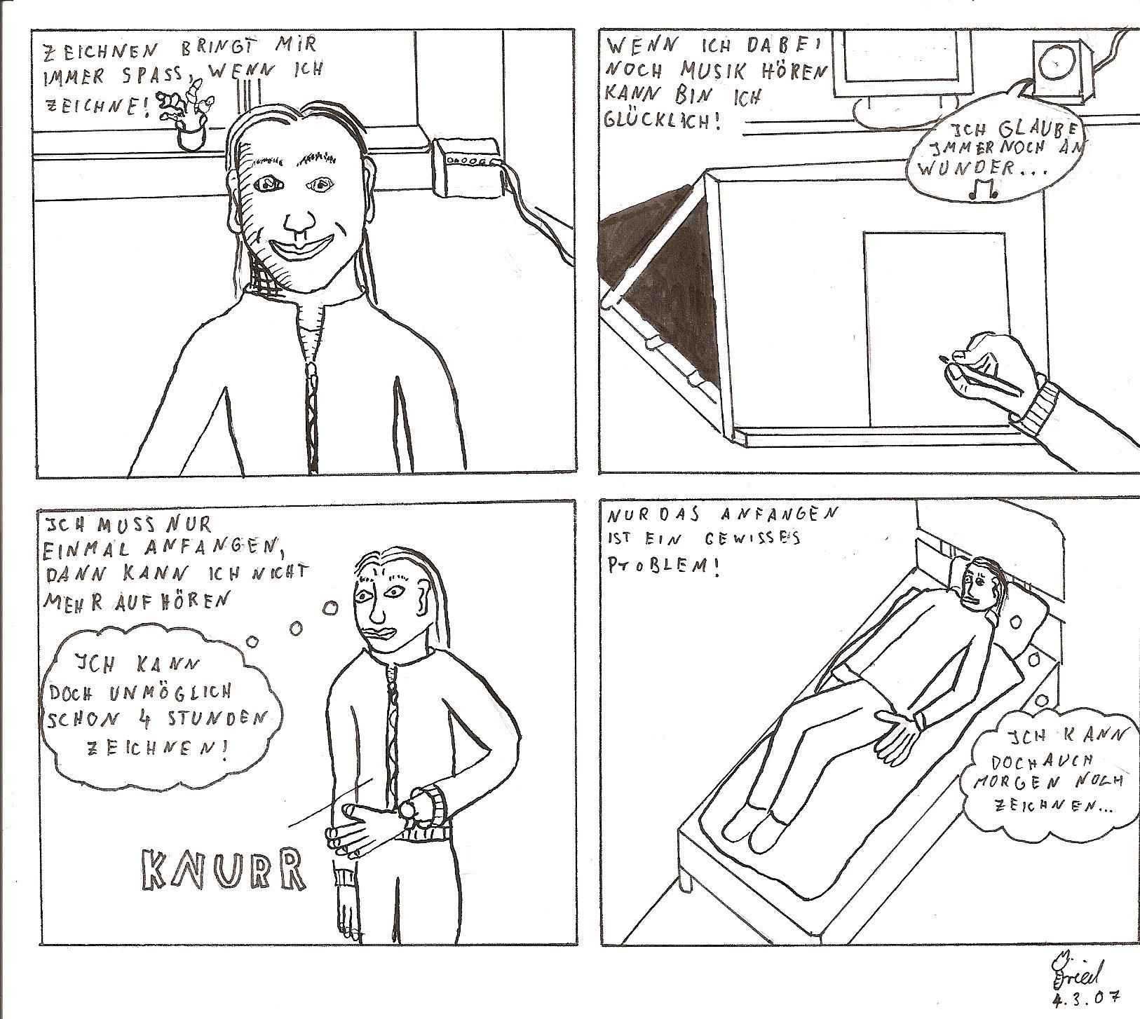 Also, ich hab nicht den Anspruch regelmäßig zu reinzuzeichnene, und wenn ich zeichne dann geht es mir meistens darum neue Dinge auszuprobieren, wie man einen Comic gestallten kann!