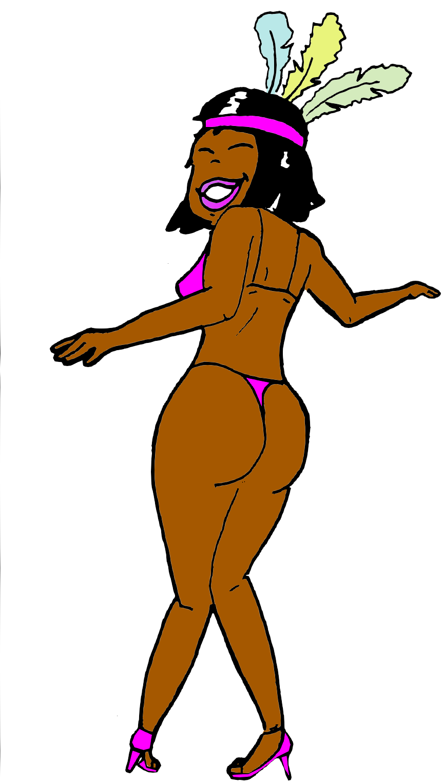 Die Dame ist eine Sambatänzerin, die im Sambaschritt über die linke Schulter nach hinten sieht. Die Gesichtsform und der Körper sind KEIN Manga.