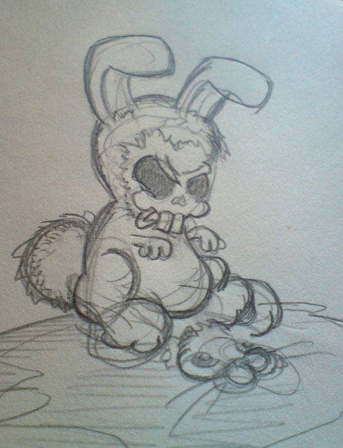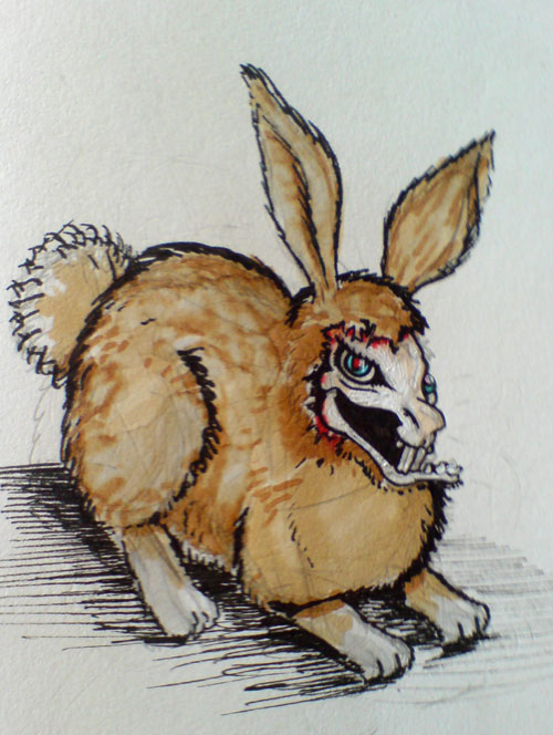 Ich bin grade Dabei ein Tatoo für einen Kumpel zu entwerfen. Es soll ein Hase sein, dem die Gesichtshaut fehlt *Uaaaarg würg*.:(