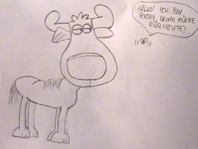 2tes bild von gestern abend, nur mit blei0r gezeichnet, habs danach nochmal mit nem schwarzen stift nachgezeichnet, aber dann sahs irgendwie schlechter aus als vorher, deswegen hier die bleistiftzeichnung. ist frei einem schon bestehenden comic nachempfunden
