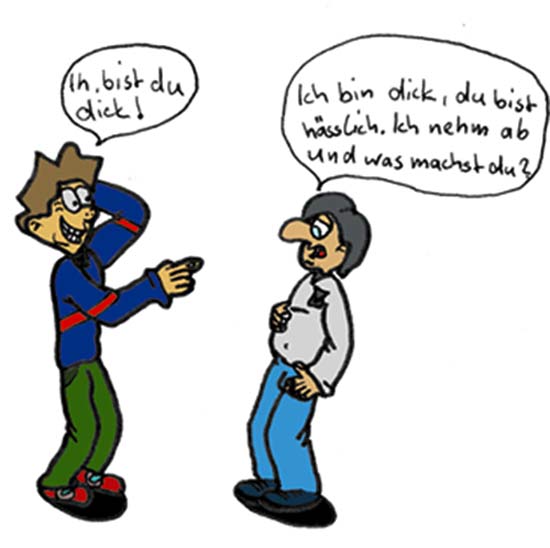 Damit der Witz noch mehr rüber kommt konnte man zwei Bilder machen und die Sprechblasen aufteilen.