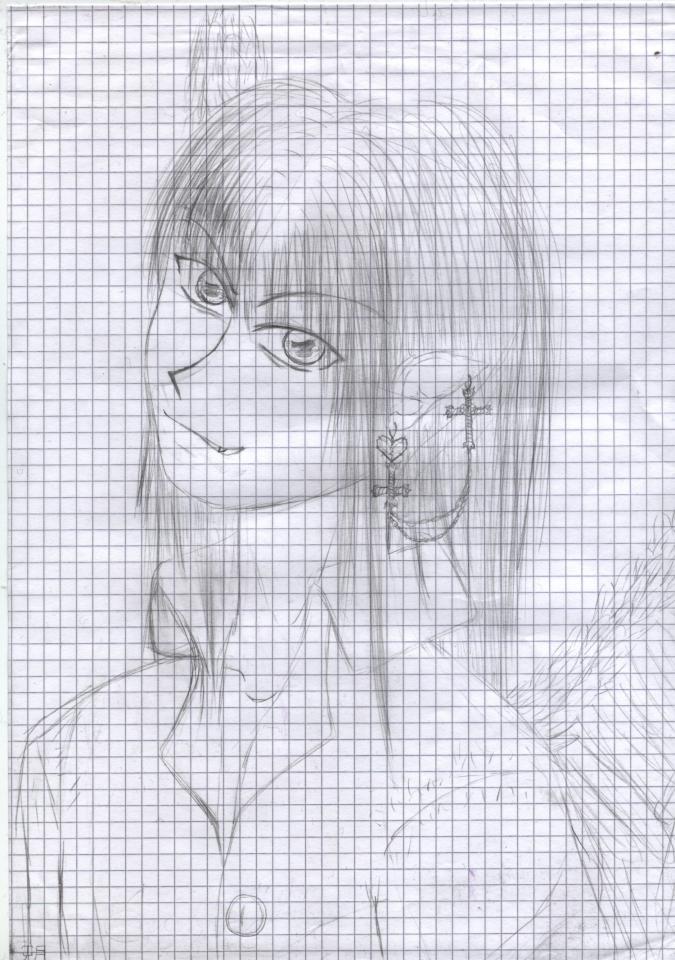 Mir gefällt der Gesichtsausdruck auf dem ersten Bild sehr gut, und auch der Oberkörper sieht trotz deiner selbstkritik gut dazu aus. Schade nur, dass das Papier kariert ist, sonst würe es noch besser aussehen.