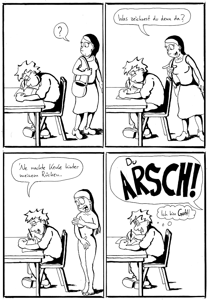 Moin moin, hab das Forum per Allvater Google entdeckt. Ich kam, sah und meldete mich an. Als Einstieg mal ein Comic aus meiner Feder. Da stecken 4 Jahre geballte Zeichenerfahrung drinne.
