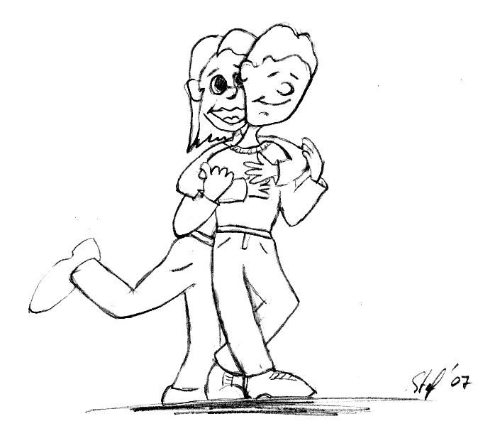 Fuchsi: Das mag ja an meiner abseitigen Phantasie liegen, aber für mich sieht es aus, als würde sie ausholen, um ihn zu treten