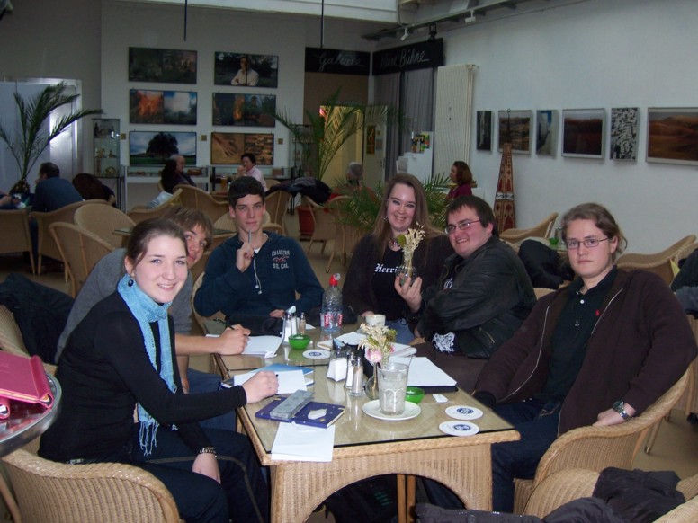 Eine ferne Turmuhr schlägt 14 Uhr. Immerhin drei Personen sind pünktlich. Zwei weitere erscheinen wenige Minuten danach, die letzte planmäßig im akademischen Viertel... ;)