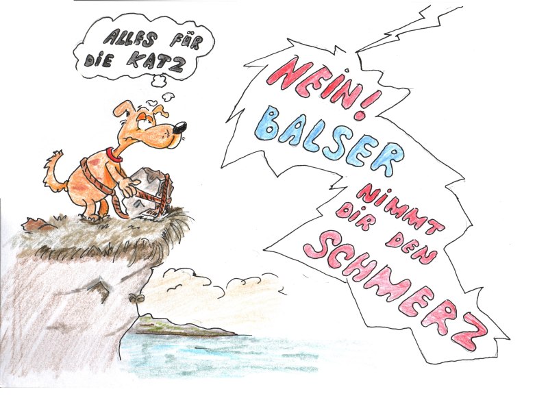 Schließe mich Gartenfee an, man weiß eigentlich nur beim vorletzten Toon, wer dieser Balser ist bzw. was er macht. Die Beine bei dem Typen auf Nr. zwo sind mir nicht ganz klar. Irgendwie sieht das so aus, als hätte er im Schritt ein drittes Bein und eins der anderen beiden fehlt dafür.