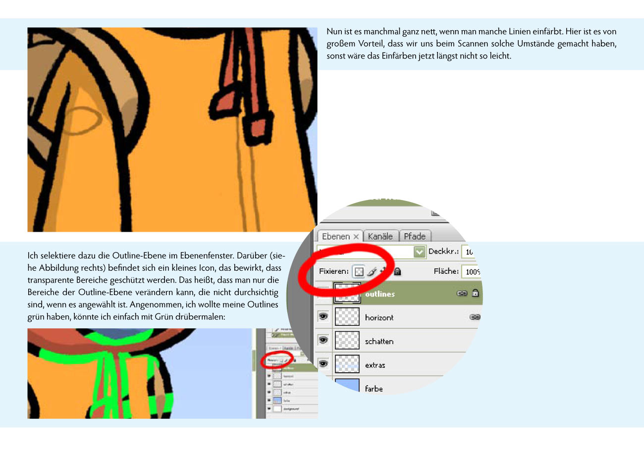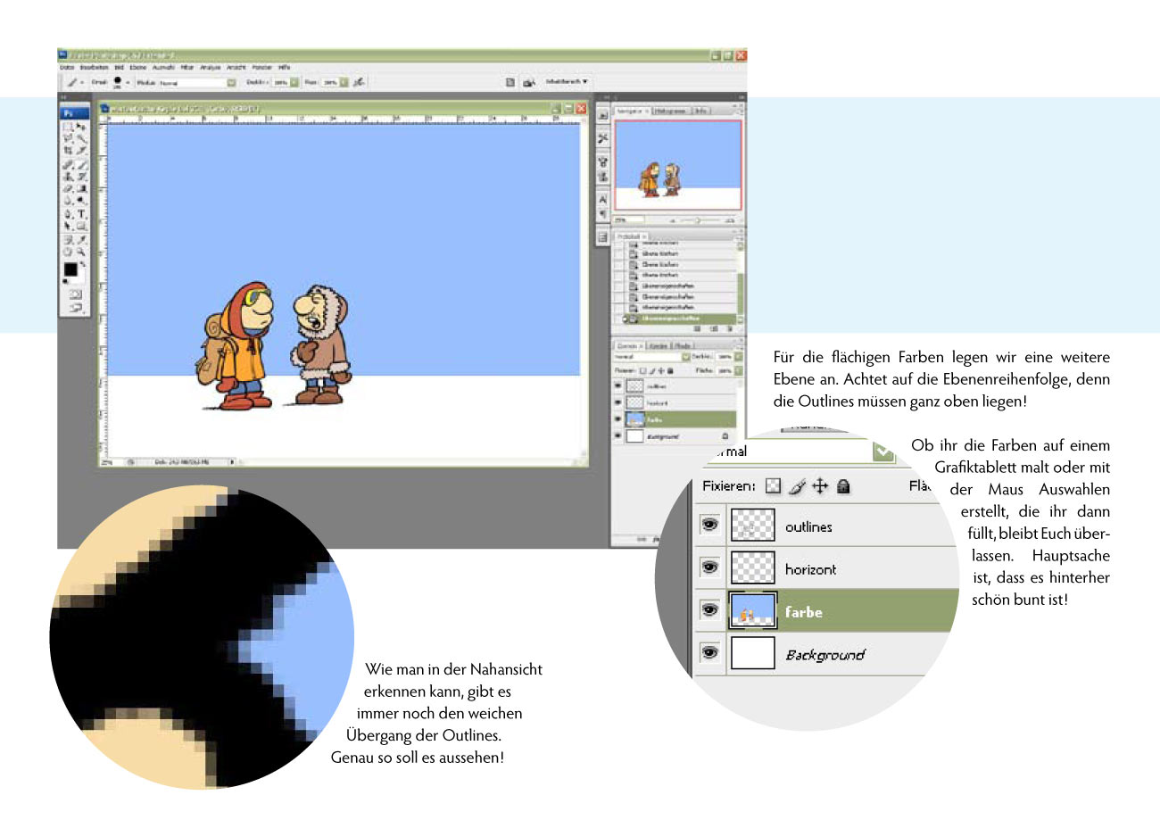 Der Bereich geht dann praktisch bis mitten in die Linien hinein, da schwarz allerdings beim Kräftewettbewerb der Farben immer gewinnt, überdecken die Outlines die Füllfarbe und man hat keine Störung zwischen Linien und Farbe.