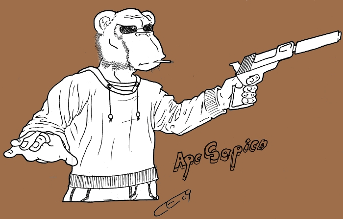 Der Affe ist extrem cool, nur die Pistole wirkt sehr flach im Vergleich zu ihm.