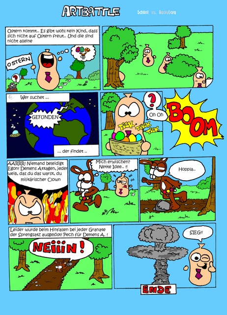 Anyway, im Vergleich zu früheren Battles hat sich zeichentechnisch gesehen eine Menge getan bei Dir, find ich gut. Was der Sache aber noch fehlt, sind Schatten. Unbedingt.