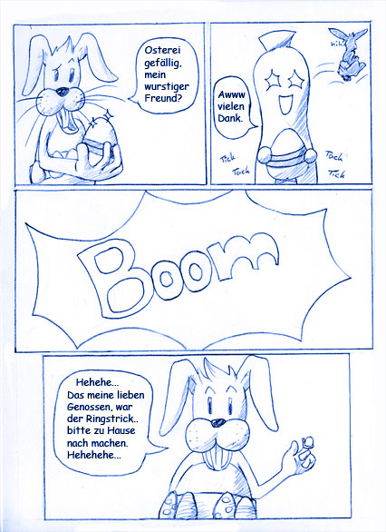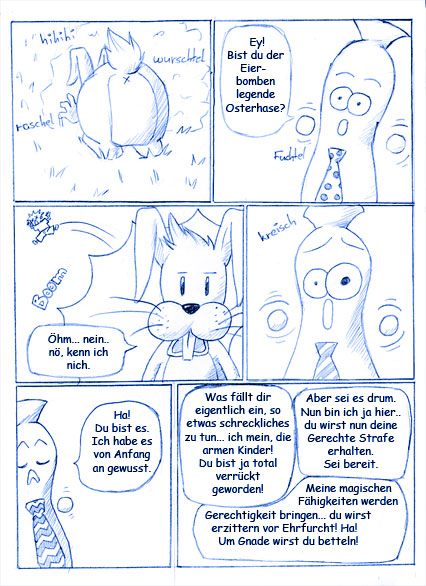 Die netten Wustköpfe, die knallenden Farben und diese "Deus-ex-machina"eske Story. Vorallem der Typ, der bei der Eiersuche hinter das Panel schaut ist klasse. Und die Leute, die rechtzeitig abgegeben haben, kriegen von mir schon allein aus Prinzip volle Punktzahl