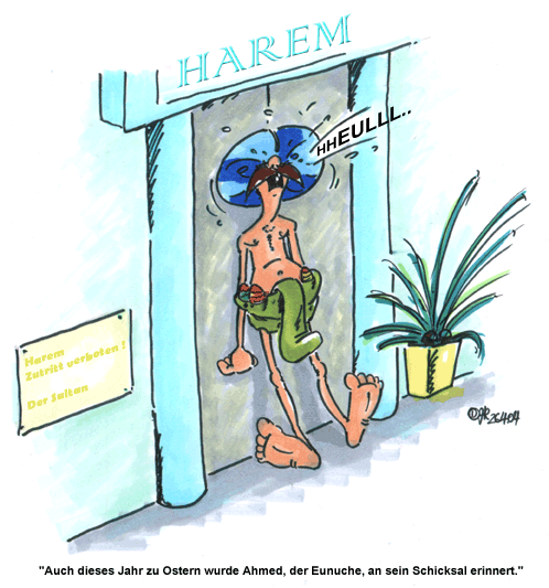 Der Gedanke war halt, dass die Haremsdamen die Ostereier bei ihm verstecken und er an sein Schicksal erinnert wurde.