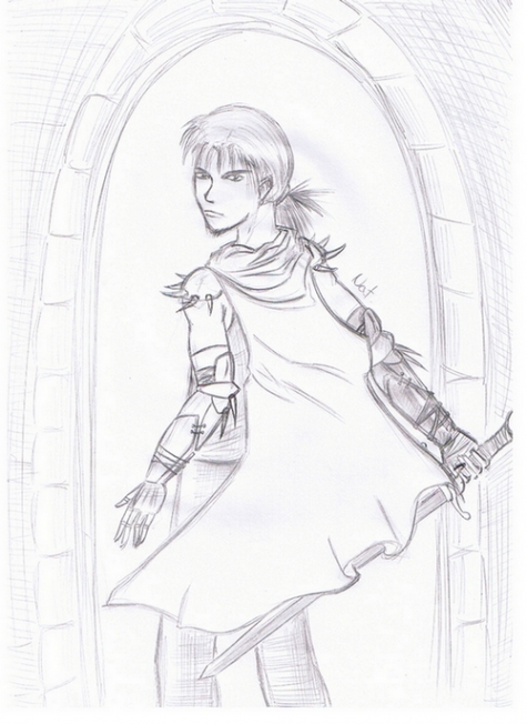 Ist eine kleine Übung. Das ganze ist simpel gehalten. Gesicht gefällt mir nicht (Könnte meiner Meinung nach männlicher sein.^.^\") und das Schwert sieht künstlich aus. (Warscheinlich aus Pappe + unterm Umhang versteckt.)