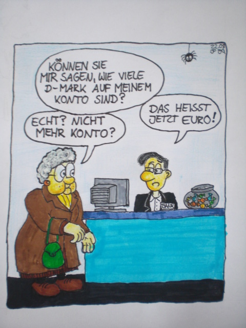 der mit der Oma in der Bank errinnert mich irgendwie an meine Uroma. die war irgendwie am ende teilweise so dusselig, die wollte ständig Reichsmark abheben...