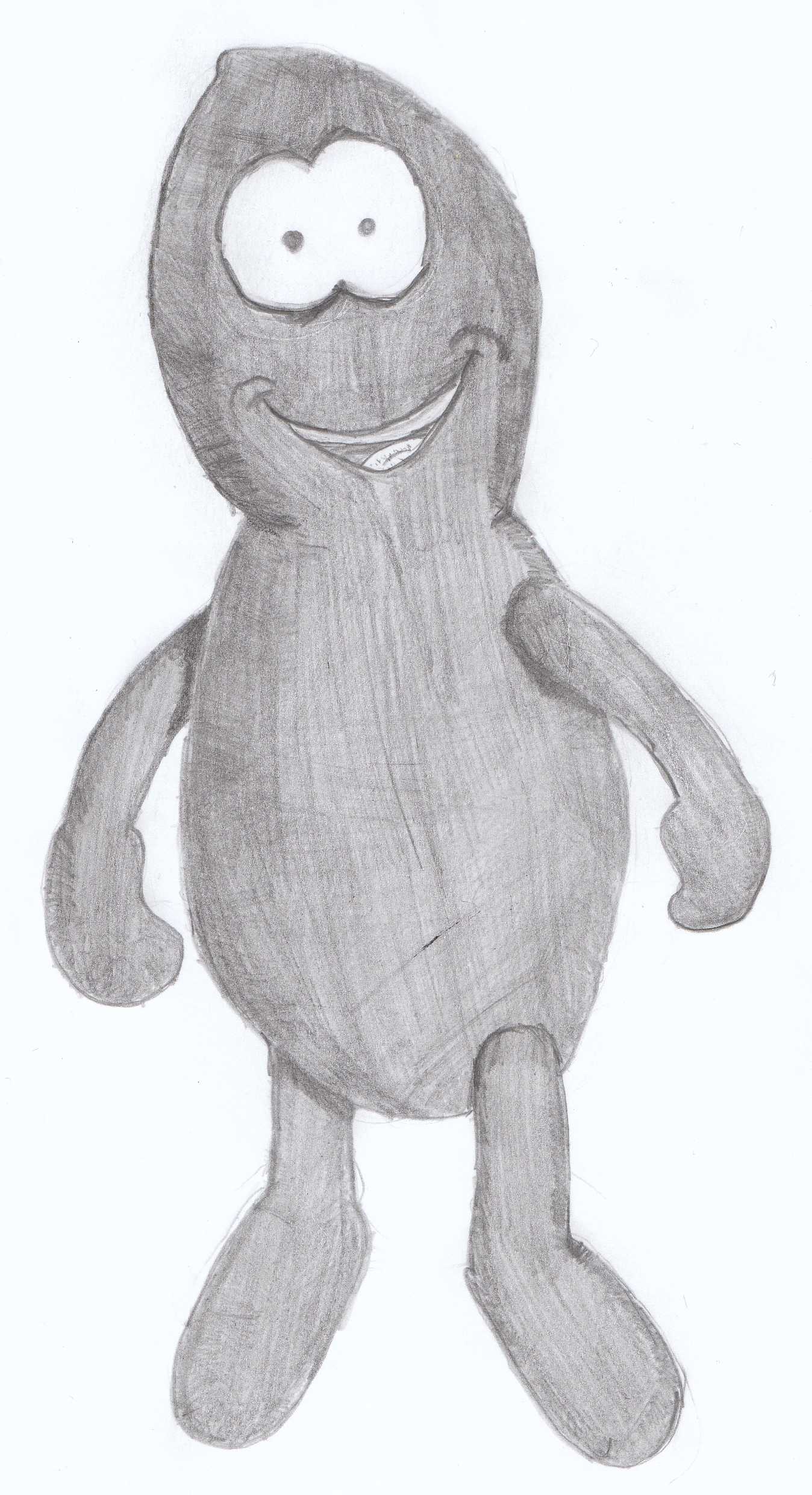 sieht gut aus. aber auf den 1. blick hätt ich nich erkannt, dass es eine erdnuss ist - vielleicht solltest du noch etwas schalenstruktur hinzufügen. den ansatz vom linken bein würde ich auf gleicher höhe wie den des rechten machen.