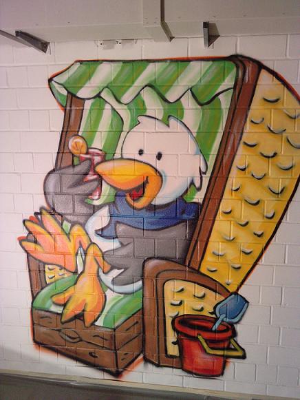 Zu den Bildern. Die gesprühten sind noch nicht fertig, da kommt noch eine Strandlandschaft in den Hintergrund. Das erklärt auch den Schwimmreifen.