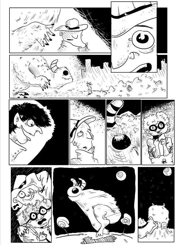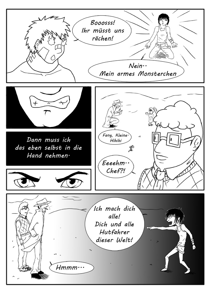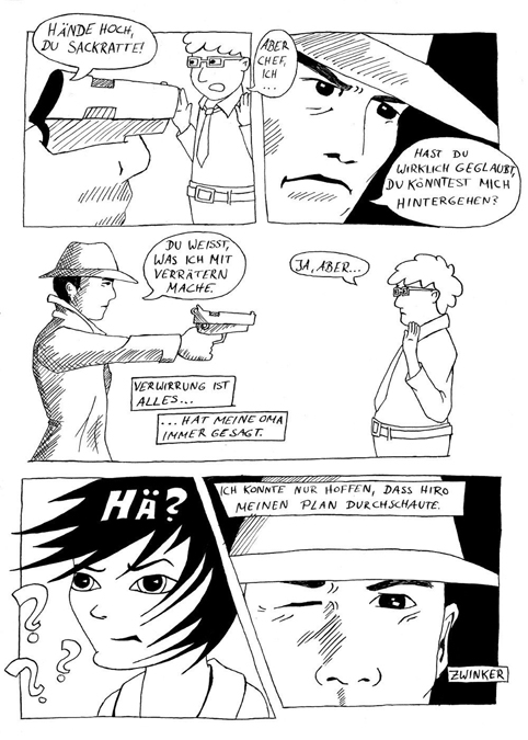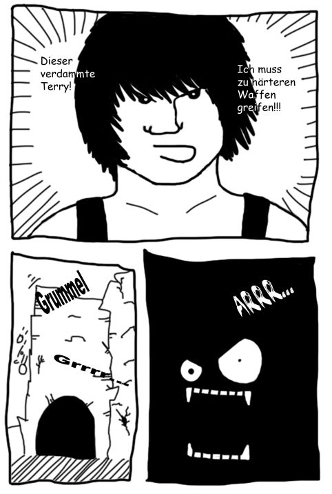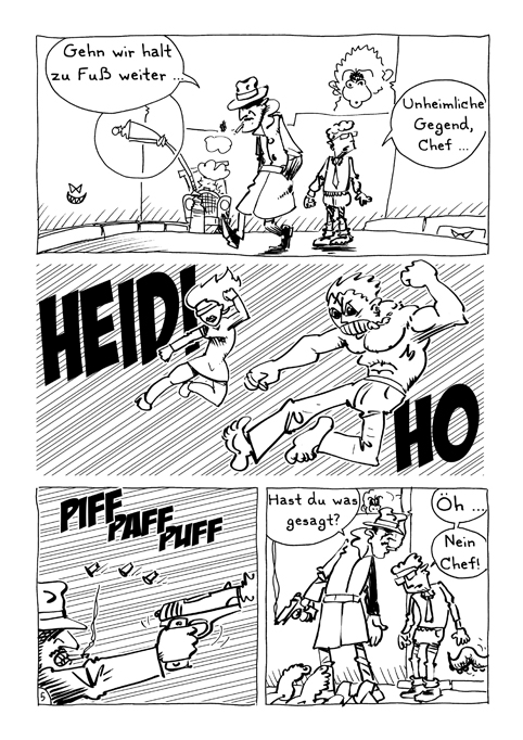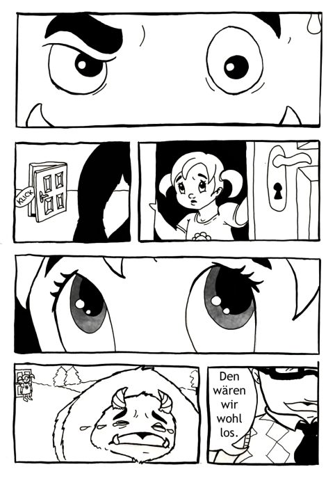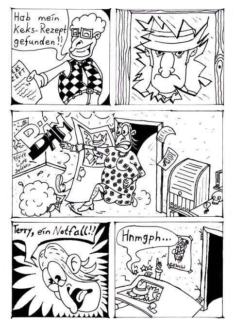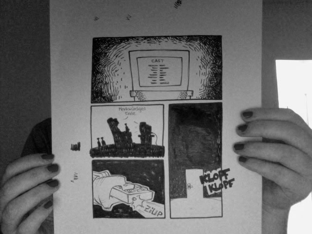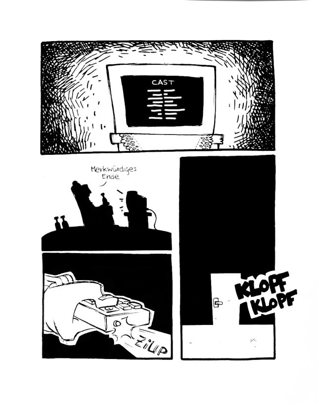 Ach ja: Das im zweiten Panel heißt "Merkwürdiges Ende".