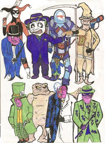 ) und deine Interpretation von Batmans Widersachern gefällt mir. Ich denke mal, dass das alles Gegner von Batman sind, aber auf alle Fälle aus dem DC-Universum, glaube ich