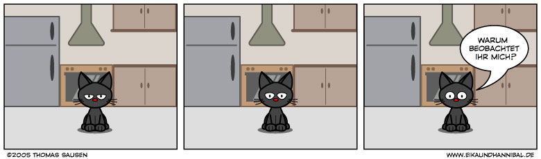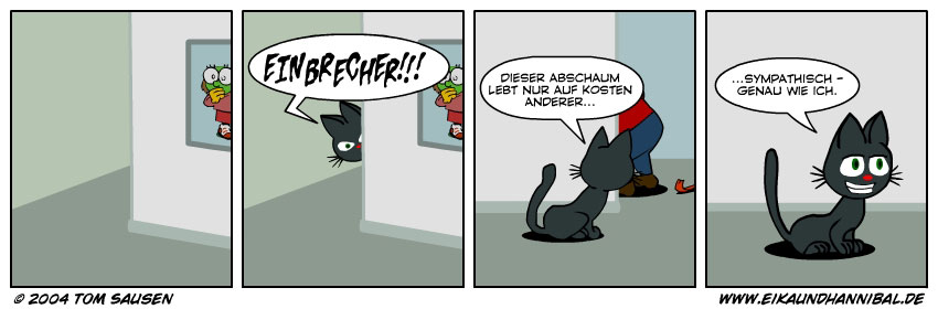 Dann haben wir Hannibal... Hannibal ist ein intelligenter Kater. Sarkastisch/Ironisch gegenüber seine Mitwelt. Kommandiert Eika rum und ist oft sehr abweisend zu ihr. Außerdem meint er Chef des Hauses zu sein. Im tiefsten Inneren will er glaube ich die Weltherrschaft an sich reißen.