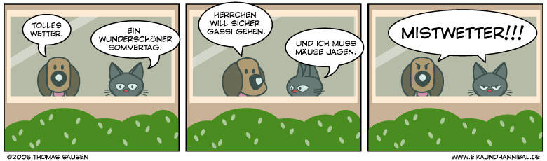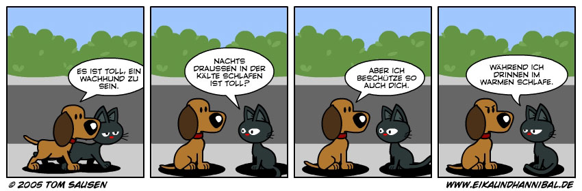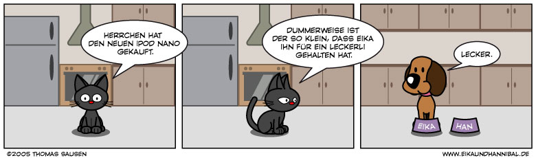 (jaja, tolle Autorenausrede). Herrchen arbeitet als freiberuflicher Webdesigner/Illustrator und ist Apple-Fan. Hier und da kommentierten Eika und Hannibal das Leben Herrchens. Beide reden auch manchmal direkt zum Zuschauer und nutzten sogar Macs. Bis auf Frauchen (in den späteren Folgen), einer Maus und einer Flohbande, kamen in der Serie keine anderen Charaktere vor. Sichtbar waren von denen sowieso nur die Flöhe.