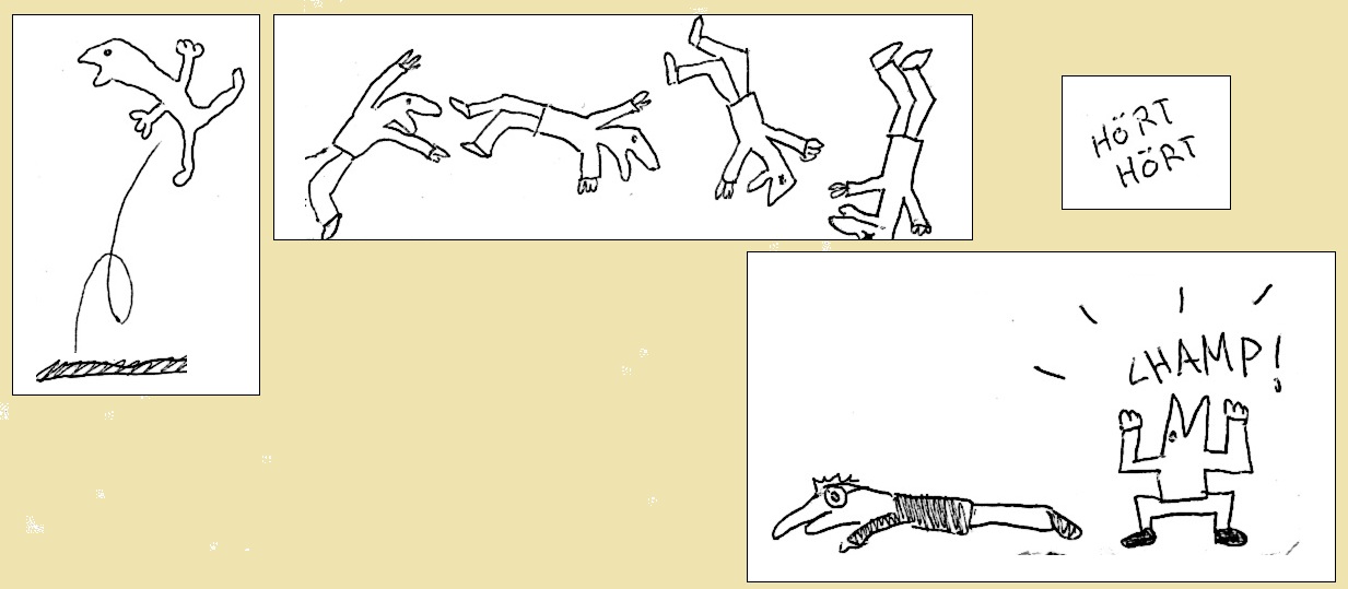 langweiligen Unterrichtsstunden begannen wir Comics zu zeichnen. Bei den Panels haben wir uns abgewechselt. Wir nannten diese Comics