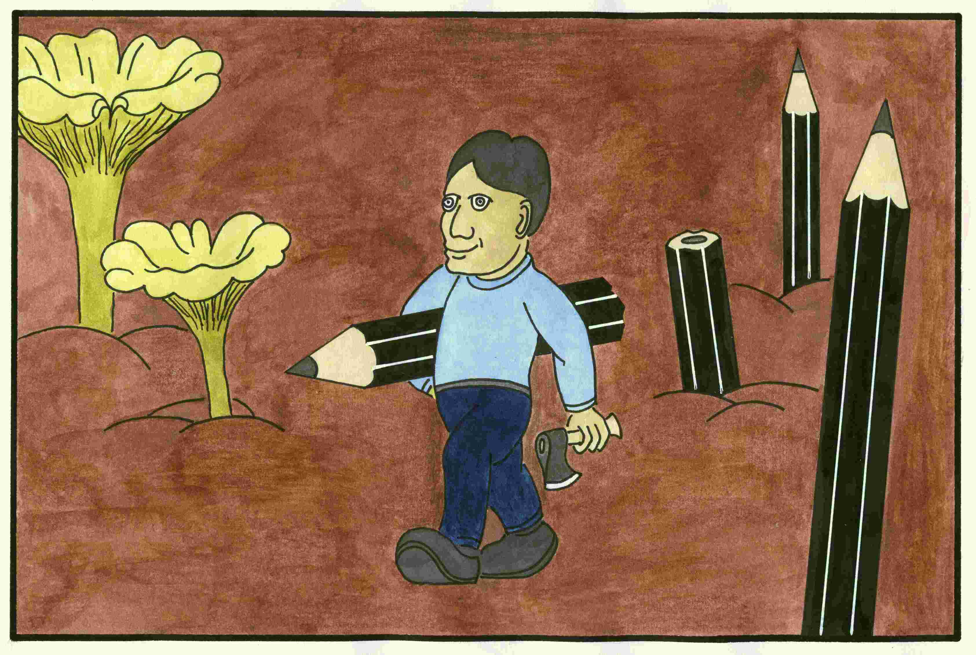 Das Labyrinth habe ich für eine hausinterne Zeitung gemacht. Es ist ein Experiment für Körperhaltungen und Raumperspektiven. Wer will, kann natürlich auch was philosophisches hineininterpretieren. Zuletzt wollte ich die Türen schwarz machen, wäre dann aber insgesamt zu düster geworden. Diese Lösung ist besser.