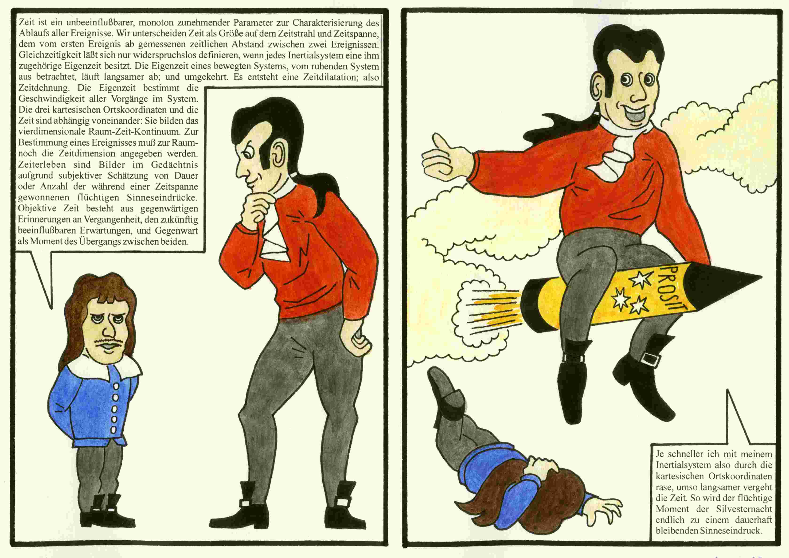 Wie bereits früher erwähnt hatte ich die Figuren schon seit Jahren im Kopf, da konnte ich aber noch nicht zeichnen. Zuerst hat mir ihr altertümliches Outfit gefallen. Auch inhaltlich dürften sie in der Epoche des Rationalismus, Aufklärung, Merkantilismus und überhaupt des barocken Sinnesmenschen angesiedelt sein. Ich denke, das gibt eine Menge Stoff. Mit dem Gedanken, sie in eine andere Zeit zu versetzen, kann ich mich noch nicht anfreunden. Durch die Namen, und wie mich eine Bekannte darauf aufmerksam machte, die Farben der Kostüme, haben Y&C auch was frankophiles. Davon abgesehen muß sich ja der Aktionsraum nicht auf Frankreich beschränken, zumal ich dafür kein Experte bin. Wahrscheinlich wäre eine Weltreise mit zeitgemäßen Transportmitteln naheliegend. (Ich habe übrigens mal Geowissenschaften studiert.) Fehlt eigentlich nur noch Grundkonflikt und Handlungsmotivation.