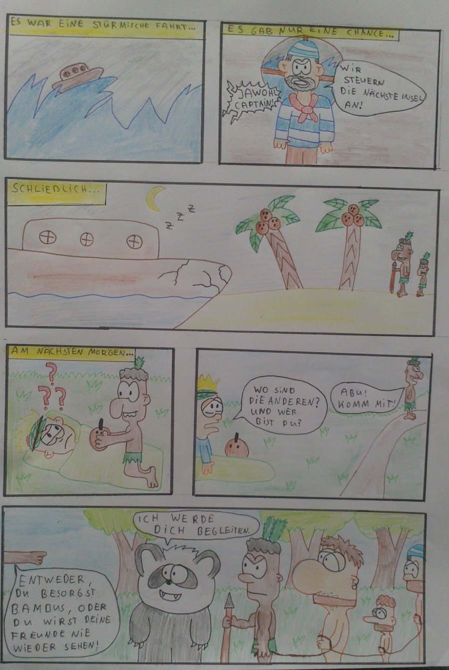 Aber schön flüssig der Erzählverlauf. Nur im zweiten Panel ist ein Problem. Wenn du die Sprechblase, die du zuerst gelesen haben möchtest nach links schreibst, dann wird sie auch zuerst gelesen