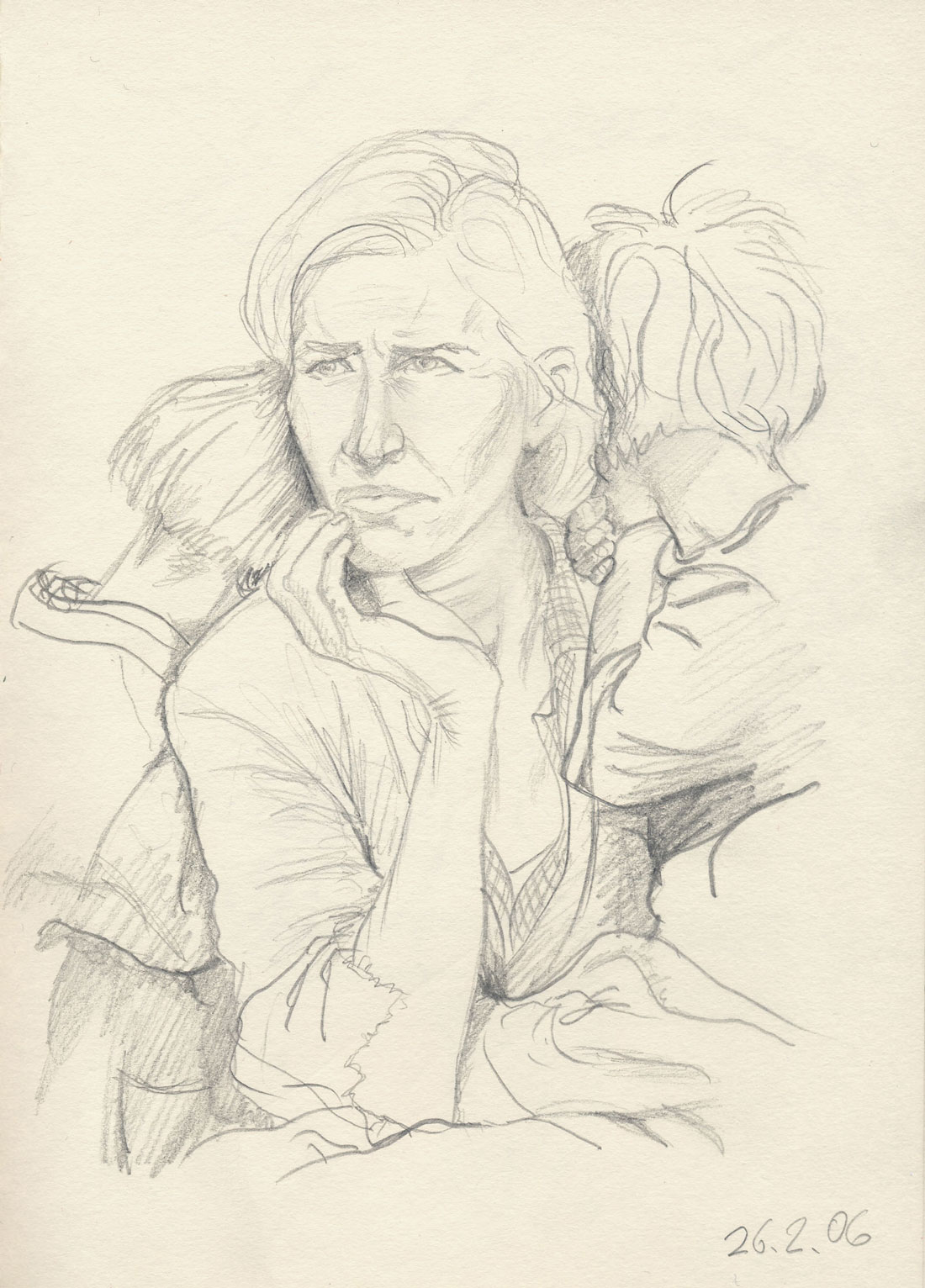 Hier nochmal ein paar Bleistiftzeichnungen nach Fotos. Eines davon ist ja recht bekannt. Die anderen beiden sind nach älteren Zeitungsfotos gezeichnet. Die junge Dame war zu der Zeit aufstrebende Nachwuchspolitikerin bei den Linken. Jetzt trägt sie die Haare etwas kürzer. (Habe mal gelesen, Frauen auf mittlerer Führungsebene haben eher halblanges Haar. Erst wenn sie ganz oben angekommen sind, können sie sich wieder feminin langes Haar leisten. Oder so.) :)