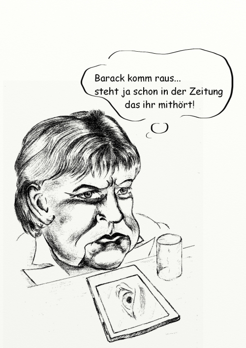 2. Uns Angela ist natürlich verkniffen und sauer, denn sie hat just an diesem Tage erfahren das ihr Handy abgehört wird. Sie in dieser Simulation mit ihrem eingeübten Teflonlächeln zu zeichnen schien mir nicht passend ;-)