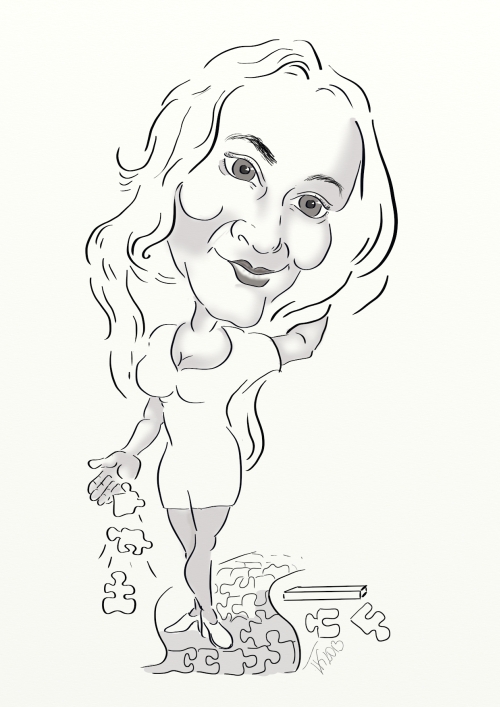 Die Frau mit dem Puzzle und die mit den beiden Schwertern kann ich ehrlich gesagt nicht identifizieren. Bei dem Porträt ganz rechts mußte ich spontan an "Kill Bill" denken, also Uma Thurman, aber sicher bin ich mir da nicht...