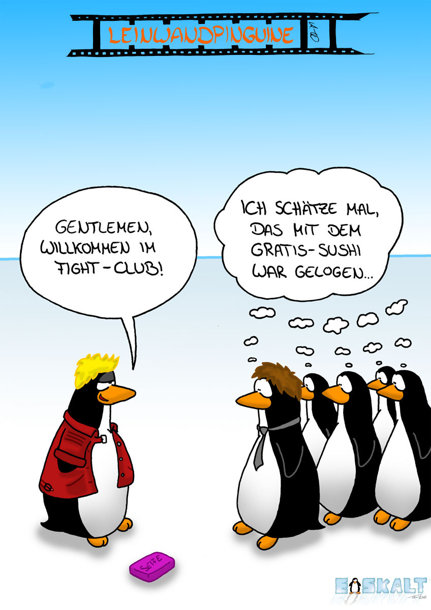 Ich finde der Cartoon hat auch ohne Filmhintergrund etwas witziges, da die Pinguine so herrlich lehr in die Gegend gucken und im GRunde alle Gleichzeitig an Sushi denken. Das ist einfach ein komischer Moment.