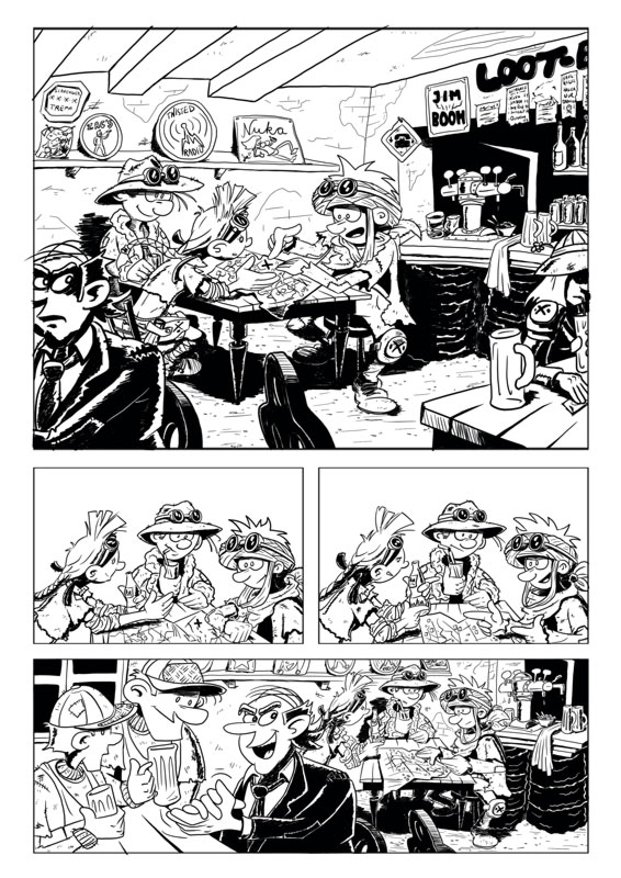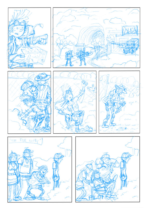 "Bleistift"-Skizze und fertige Comicseite (Rahmen aus ner anderen App importiert):