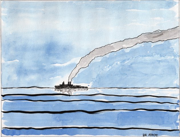 Ansonsten noch eine Frage: Ist die Tinte des Füllers wasserfest? Mir kommt es so vor, als wenn sie manchmal in die Aquarellpassagen verläuft. Das kann ganz interessant sein, aber auch verfälschen, was man eigentlich wollte.