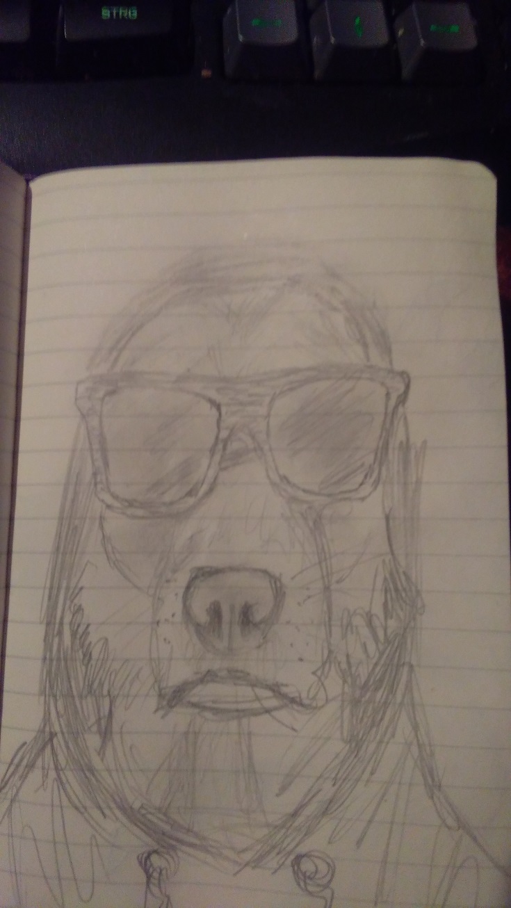 Einen coolen Hund mit einer Kapuze. Da hat mal jemand so ein Bild gemacht und ich habs dann abgezeichnet.