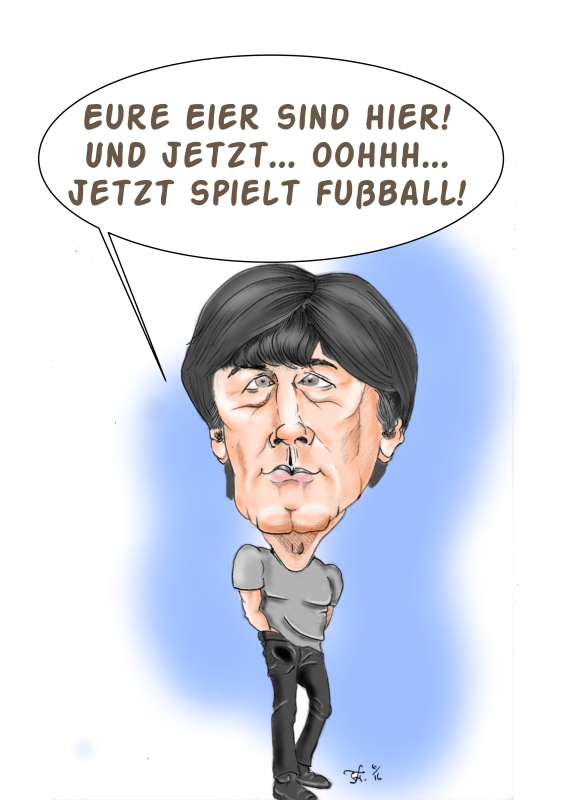 Wenn Du sowas in die Zeitung bringen willst, mußt Du allerdings bedenken, daß morgen das Ergebnis des Spiels Deutschland-Polen schon feststeht und Dein Cartoon damit veraltet sein wird.