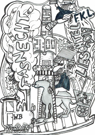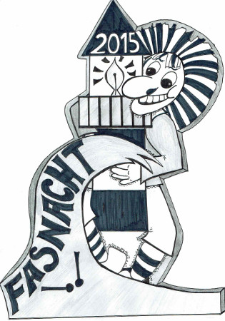 Meine Idee war: Der Fasnachtsober in den Mittelpunkt zu stellen und ihn abgezeichnet. Er ist für die Fasnachtsaktivitäten Verantwortlich wie auch für die Sicherheit.