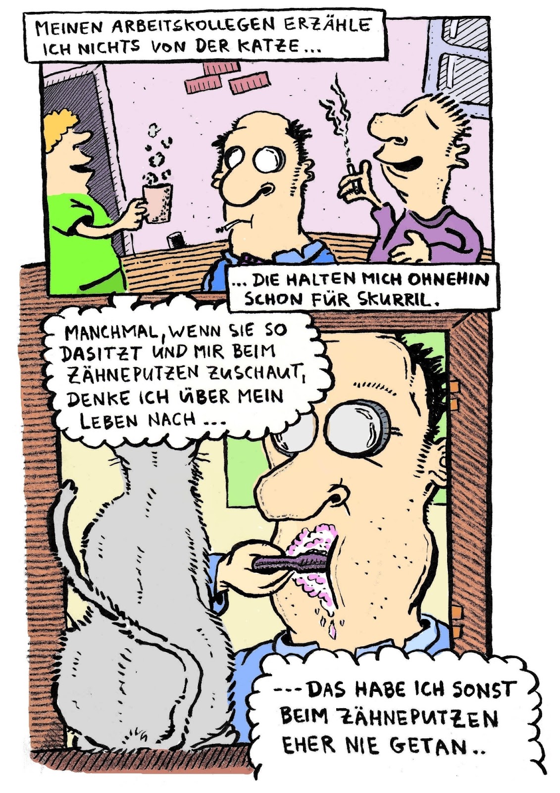 "(…) den wirklich schönen Comic von Benedikt Franke über eine Katze im Badezimmerspiegelschrank. Liebenswert, verspielt und philosophisch."