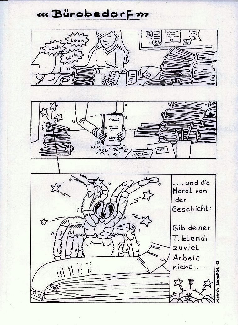 Ältere Sachen kann ich euch leider nicht mehr viel zeigen, da das meiste unters Urheberrecht fällt. Ich habe halt früher gerne böse Satiren gemacht,