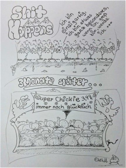 Einen alten Gordon hau ich hier mal rein (nur als Link), weil der solche Ähnlichkeit mit Deinem Hühnergag hat... ^^