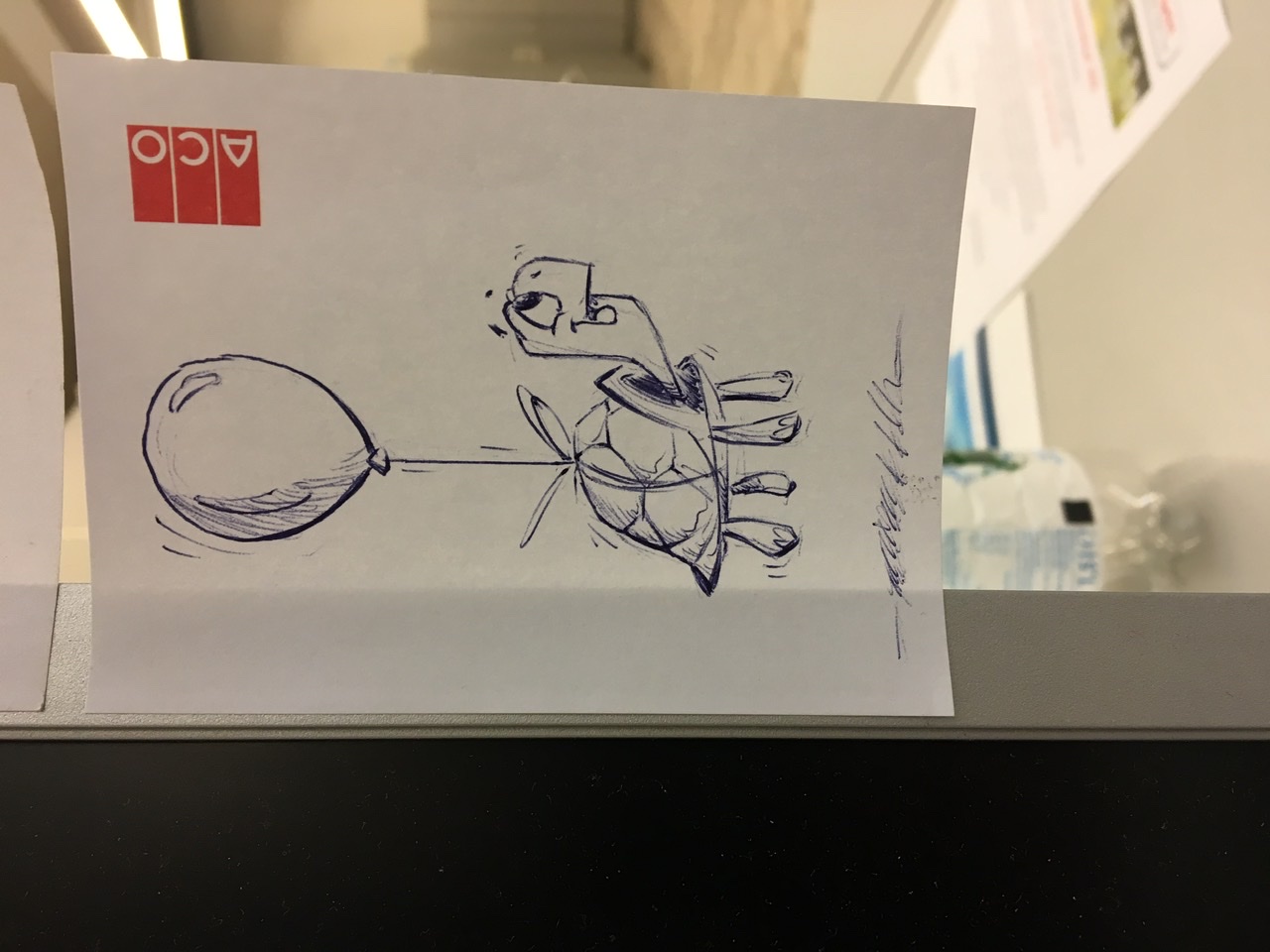 mit meinem Kulli angefangen zu zeichnen und meinen Kollegen einfach ein paar Klebezettel mit Tieren an den